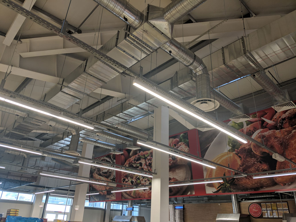 Прежде чем начать строительство здания, где будет организован супермаркет, первым делается проектирование вентиляции. Если просто заниматься проектированием во время строительства, возможно появление сложностей при стыковке с другими важными инженерными коммуникациями.