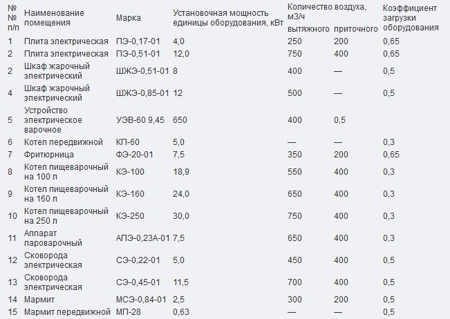 - нормы воздухообмена для работающих на кухне людей (60 м3/час на одного человека);
