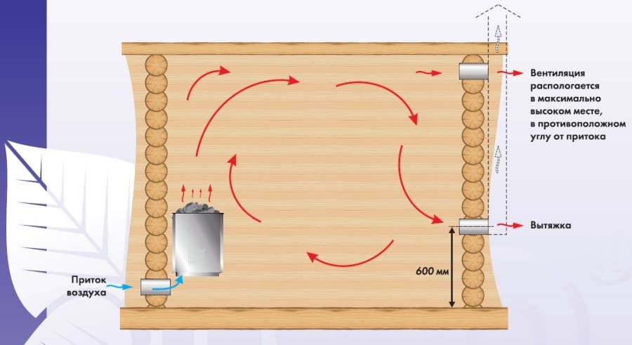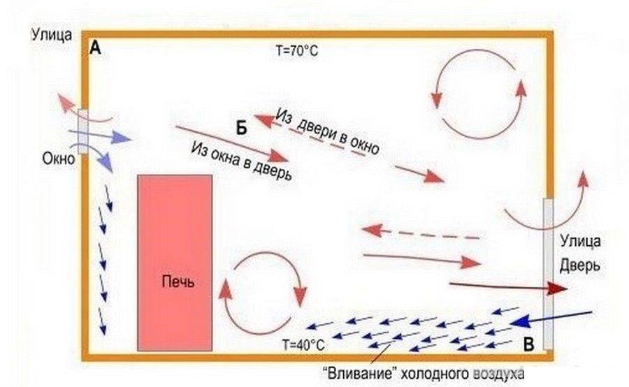 Схема естественной вентиляции в бане: