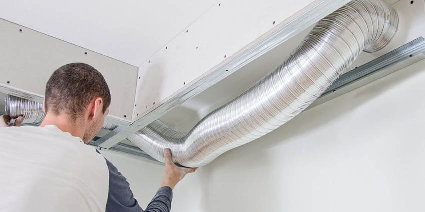 В качестве воздуховодов используют или пластиковые трубы или оцинкованные элементы. Их располагают над подвесными конструкциями и в стенах с выходом наружу над крышей или в стене.