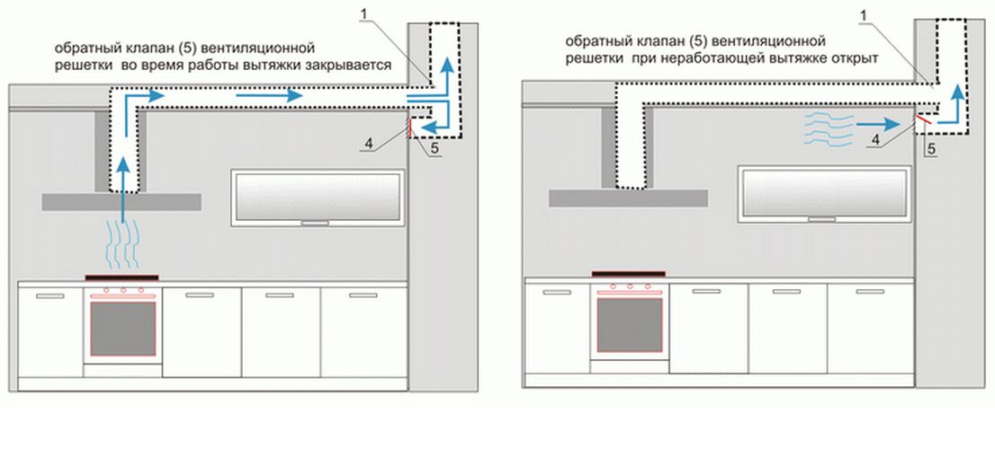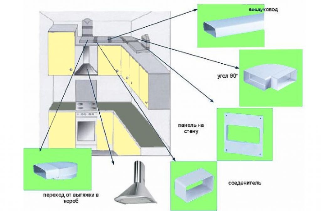 В кухне воздушные массы должны поступать через раструб (специальное «окно» над конфорками). В ином случае устранить неприятные запахи не получится. В системе должны стоять фильтры и нейтрализаторы «ароматов», которые время от времени требуют замены.