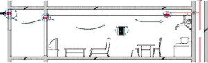 - Приточный воздух рекомендуется подавать в помещения с постоянным пребыванием людей. Что, собственно, опять-таки приводит нас к уже упомянутой схеме: приток воздуха через жилые комнаты и вытяжка через кухню и санузел.