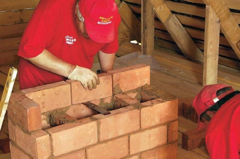 Высота кирпичной кладки над уровнем крыши должна быть не менее 7 кирпичей. Все швы в сложенной конструкции должны быть тщательно заделаны раствором, чтобы избежать проникновения дыма, копоти, пара в помещение.