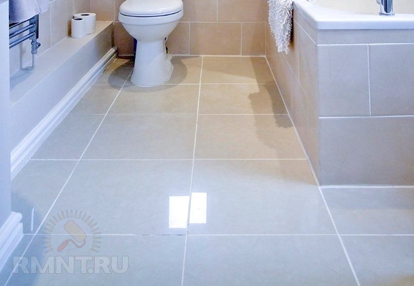 Блестящий пол в ванной — конечно, красиво, но только тогда, когда он тщательно протерт. На таком напольном покрытии постоянно будут оставаться брызги и разводы, да и поскользнуться очень легко