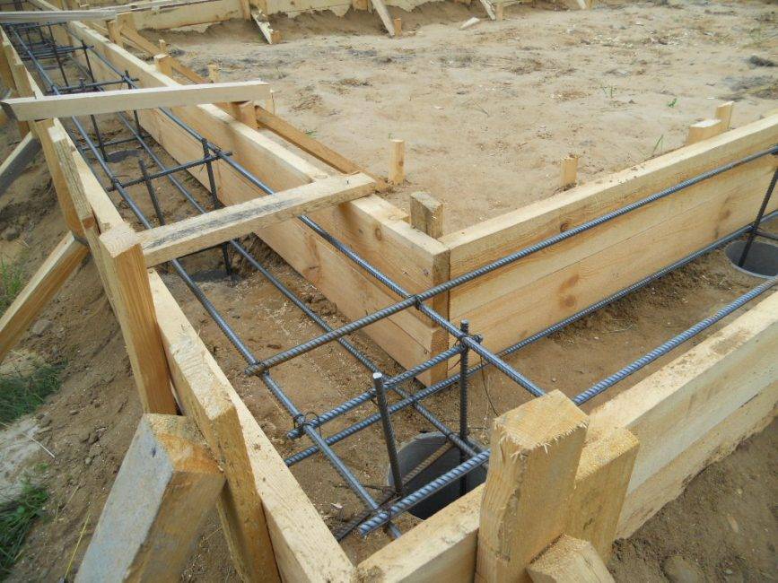 Прибиваете к стене опорный брус, по нижнему краю которого отбивается высота фундамента.