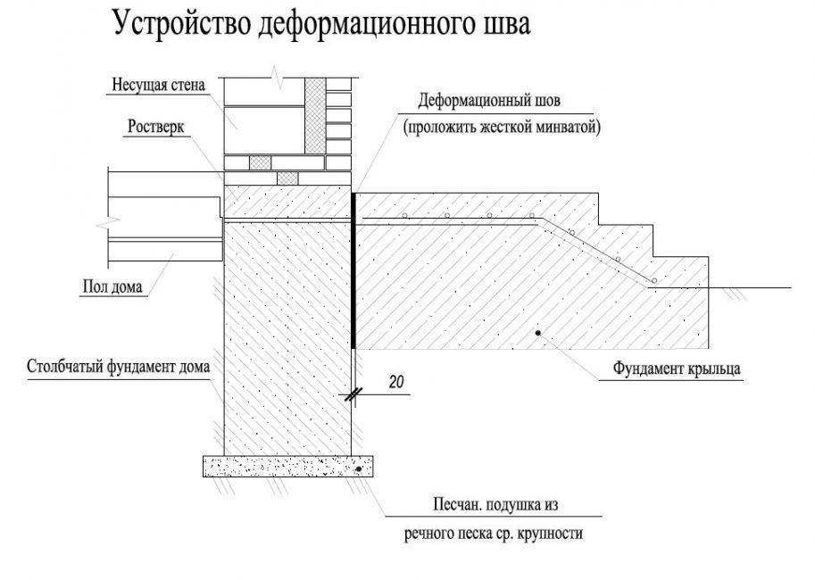 Узел деформационного шва на примере крыльца примыкающего к дому