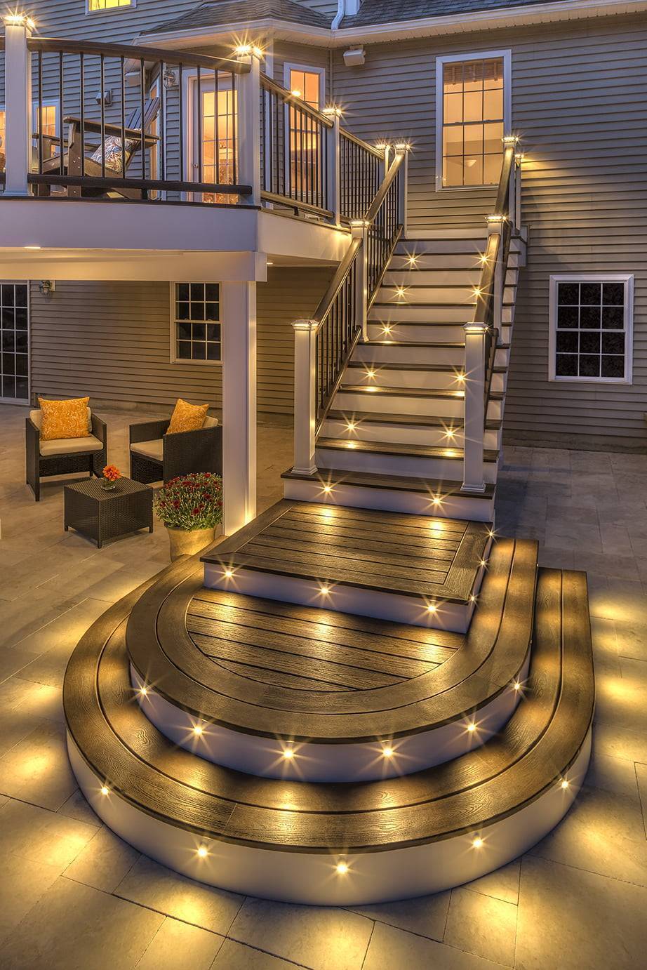 При планировании вариантов размещения светильников следует предусмотреть, что вечером параллельно с основной зоной должны быть видны ступеньки и дорожки. При этом свет не должен быть чрезмерно ярким и ослепляющим.