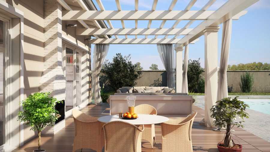 Расположение террасы зависит от желаемого уровня солнечного света, ее идеальная ориентация – юг, юго-запад. Тогда у вас будет возможность оборудовать его навесами