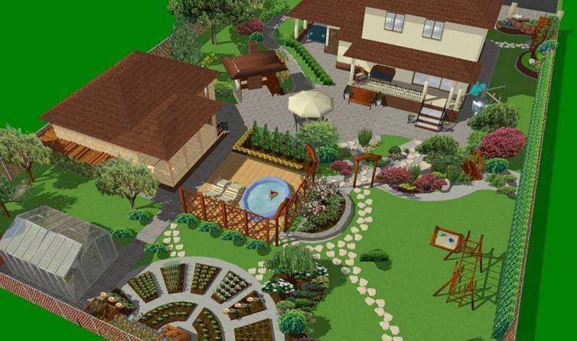 Территория должна быть не только красивой, но и удобной. Разделение пространства на функциональные части позволяет грамотно использовать полезные квадраты. Дизайнеры выделяют 6 зон: