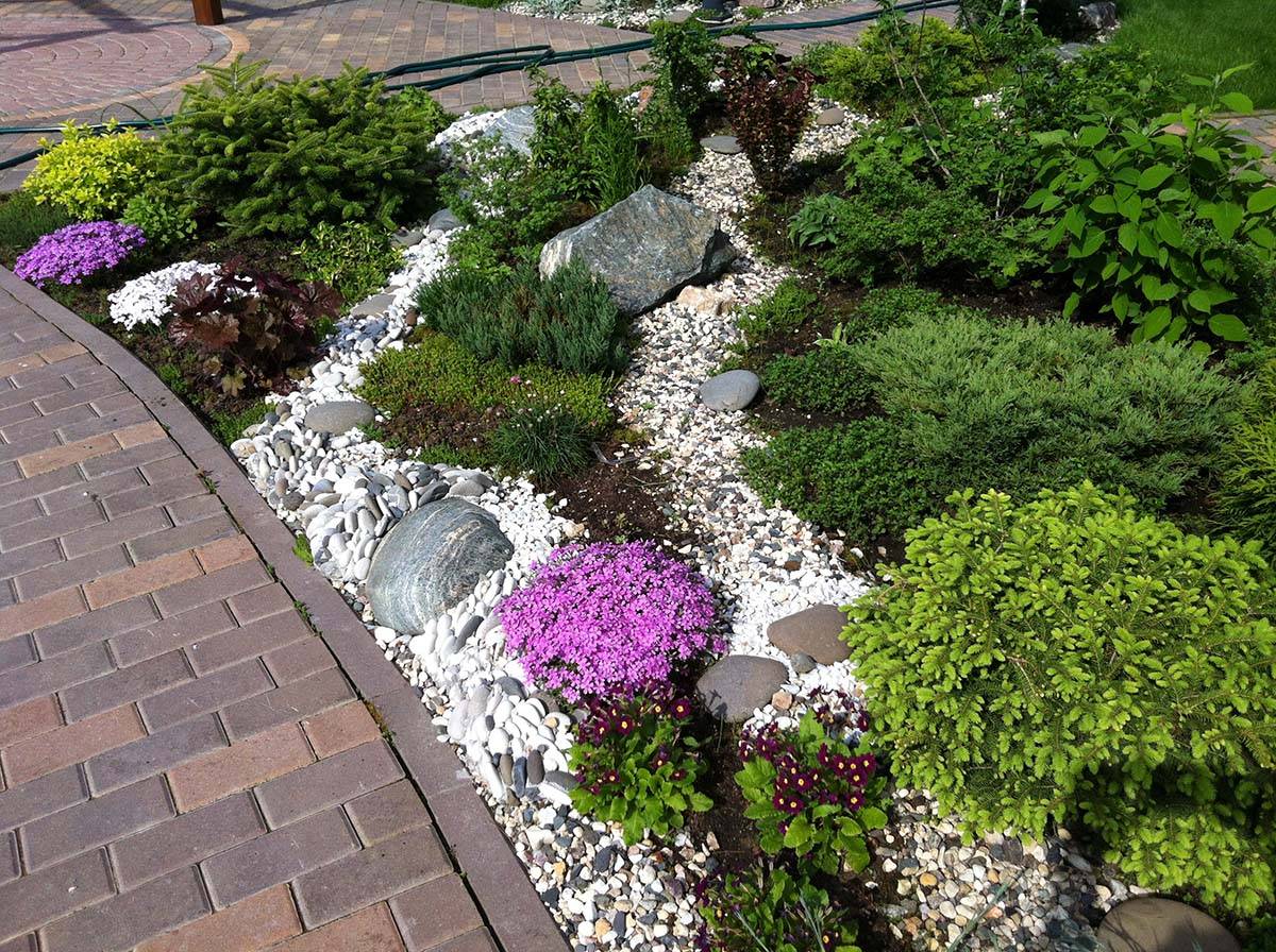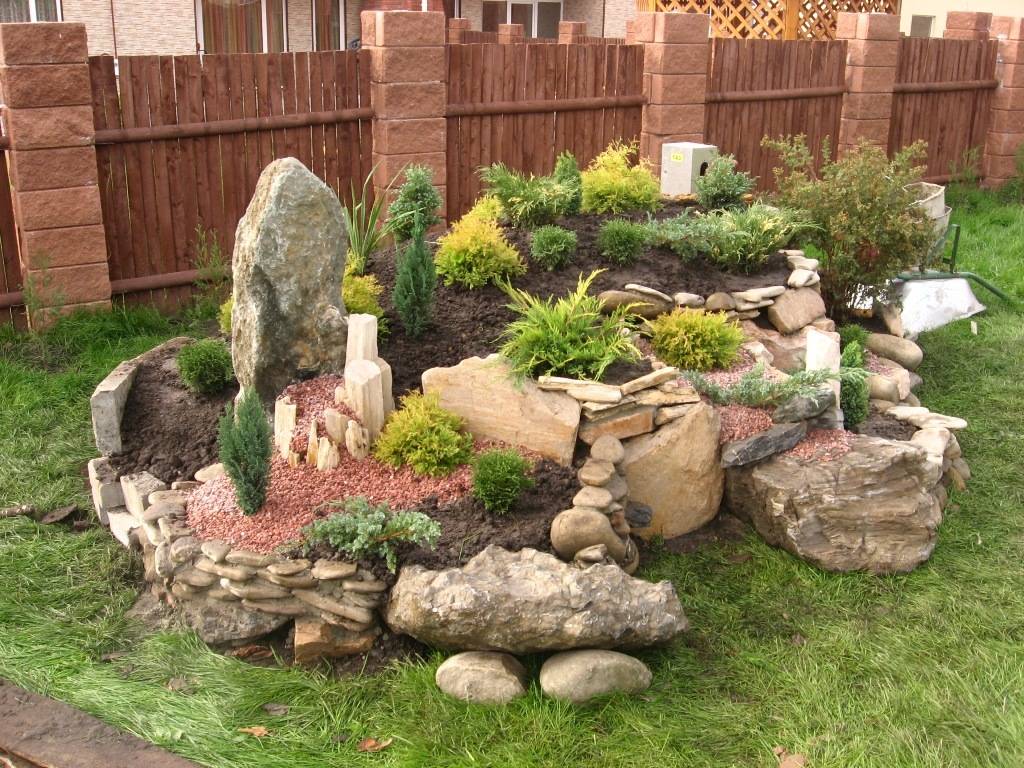 альпинарий состоит из камней разной формы в сочетании с декоративными растениями альпийской флоры. При этом создается имитация природы альпийских гор;