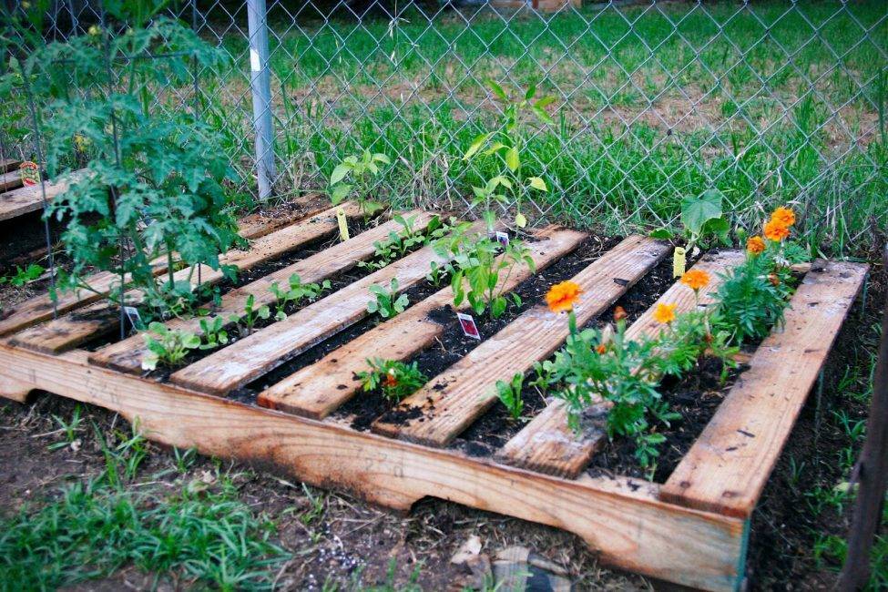 Можно взять старый поддон, затянуть его с внутренней стороны полиэтиленом, закрепить, установить и сделать прорези для цветов.