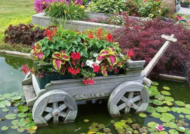 Настоящий тренд последних лет – плавающие клумбы. Чтобы сделать такую конструкцию, необходимо оборудовать водоем. Его заменителем может служить наполненная водой ванна или детский бассейн.