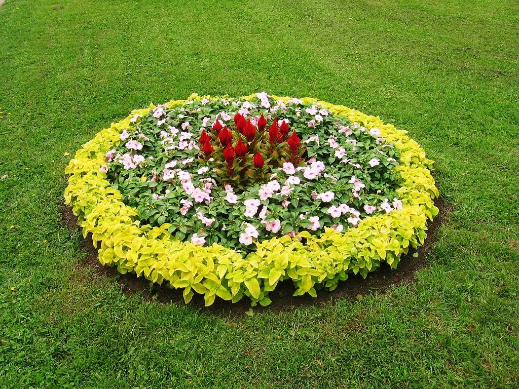 Обычная клумба должна иметь высоко, средне и низкорослые цветы. В центре разметите высокие растения нескольких видов, низкие посадите впереди.