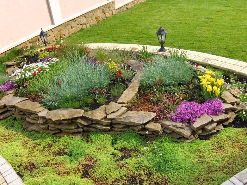 На краю высадите низкорослые виды, которые стелятся по поверхности почвы.