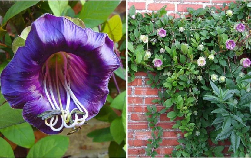 Кобея – необычный однолетник, с красивыми цветками-трубами и ажурной листвой. Растение быстро развивается, покрывает толстым ковром конструкцию. Лиану высеивают в марте на рассаду, в конце мая-начале июня – высаживают в сад. Декоративный вид хорошо растет во влажной земле. Каждые 7 дней удобряют азотсодержащими подкормками, после появления бутонов – смесями на основе калия и фосфора.