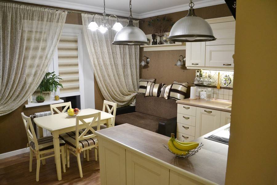 Для кухни с балконом подойдут и короткие занавески, так как они более практичны и универсальны, чем длинные.