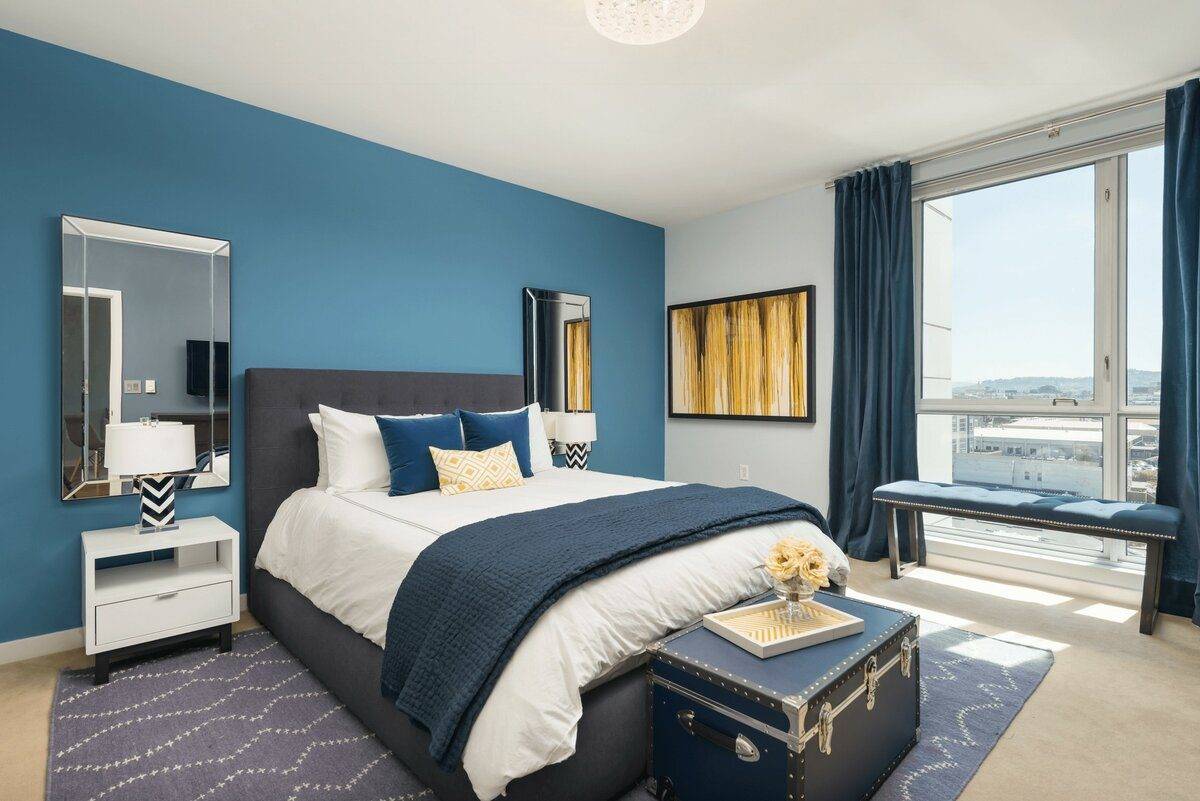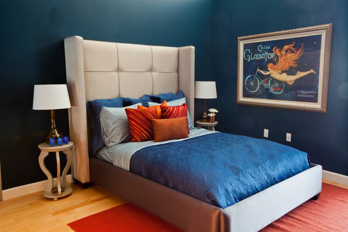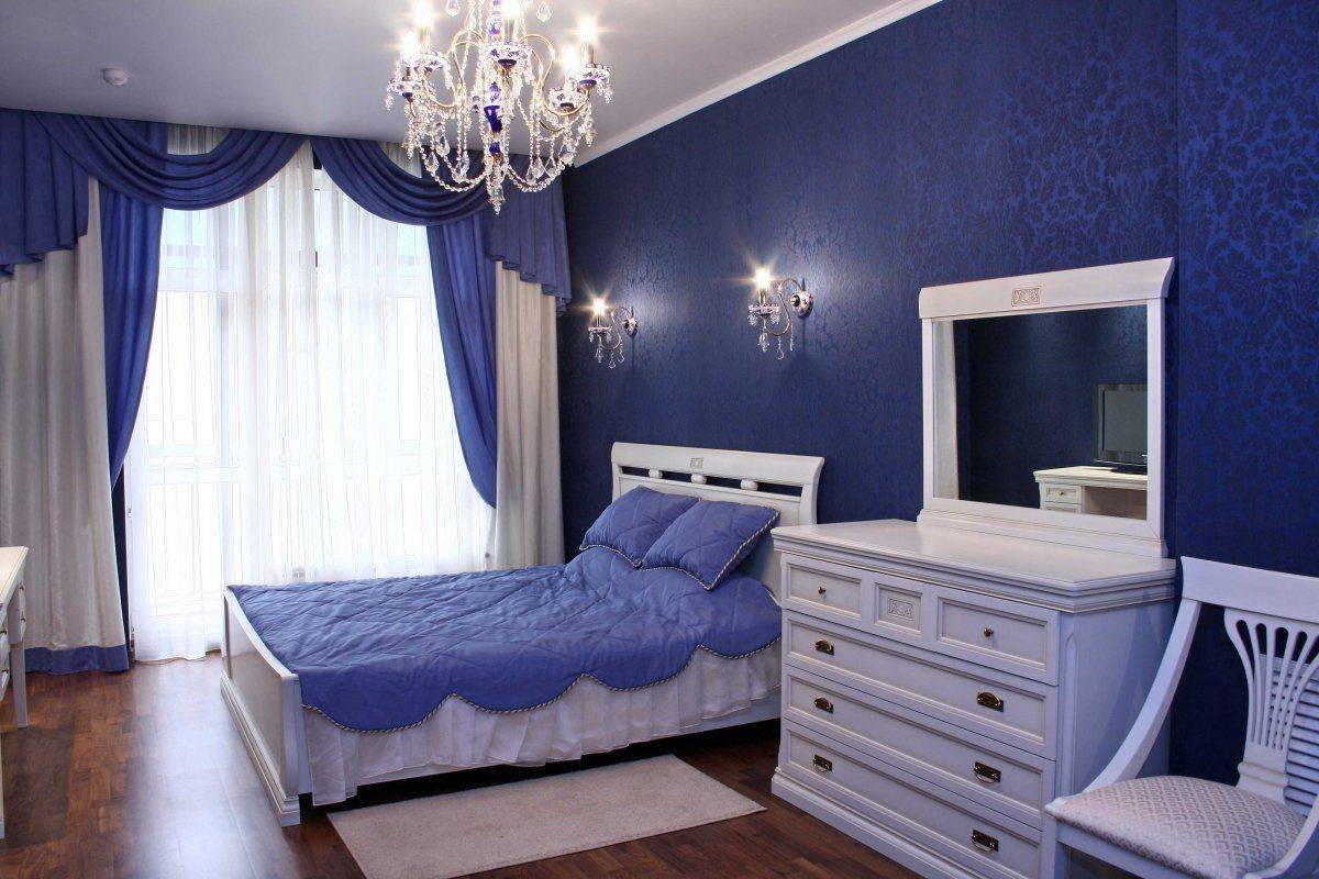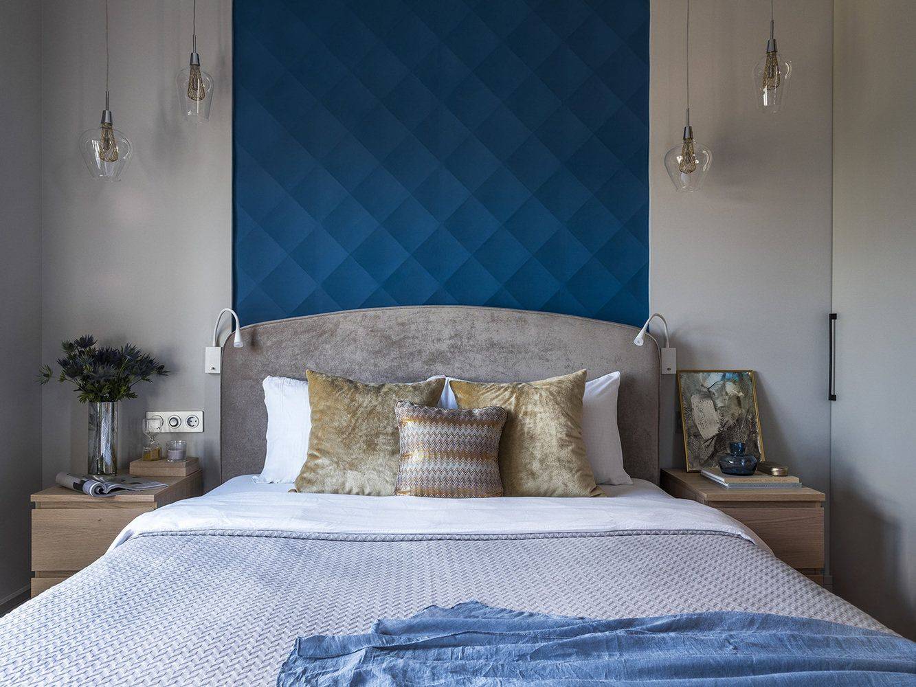 Синий цвет в интерьере спальни выглядит особенно благородно. Он не только подчеркивает эстетическую составляющую, но и часто является акцентом оформления. Кроме того, выбирая такое нетипичное решение, вы сделаете значительный вклад в собственный качественный отдых.