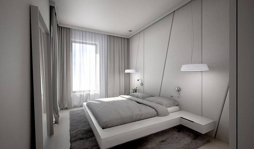 Минимализм в спальне, оформленной в серых тонахИсточник comfortoria.ru