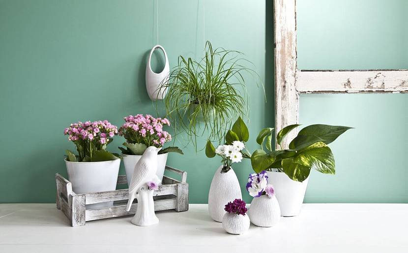 Здесь уместно все, что напоминает о весне — горшочные и свежесрезанные цветы, картины с растительными мотивами, яркие (или пастельные) светильники и вазы, посуда, салфетки и скатерти, статуэтки, коробки для мелочей, аксессуары для компьютера.