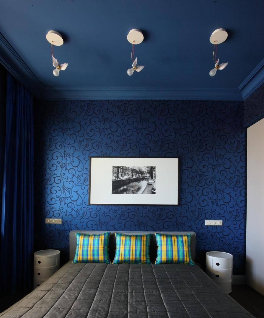 Но все же есть определенные нюансы в зависимости от выбранного оттенка. Ведь на самом деле диапазон достаточно широк: от нежного лавандового до глубокого синего тона. Поэтому интерьер может быть как темным, так и светлым. Классический цвет подойдет для любой спальни, но в то же время он требует наличия более светлых, нейтральных оттенков. В свою очередь, светло-синий цвет позволяет сделать пространство визуально больше. Кроме того, он поднимает настроение, успокаивает и вдохновляет. Поэтому данный вариант особенно часто выбирают для спальни. Если же необходимо создать особенно уютную с ноткой загадочности атмосферу, смело выбирайте глубокий синий цвет для ее оформления.