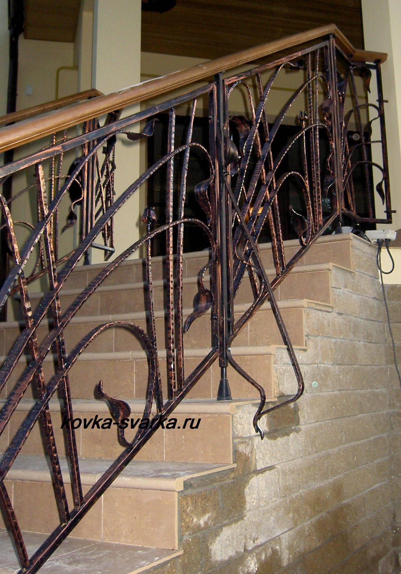 Кованые лестничные перила с козырьком. Фото Железный Век
