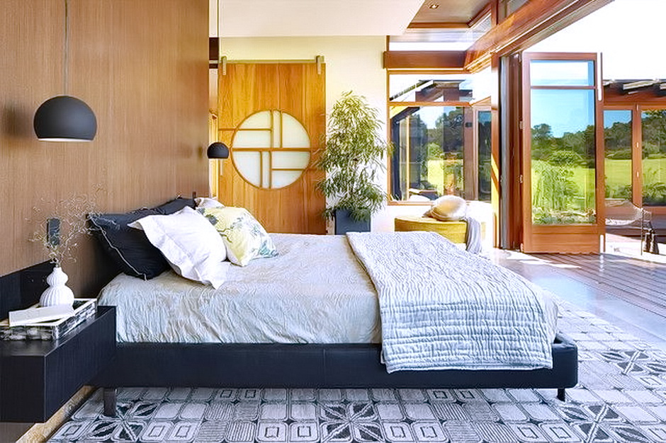 Экологические стили, кантри. Шпон под светлое дерево, кожа, бамбук станут идеальным решением. Их можно разбавить стеклянными ставками на текстурированной поверхности или без рисунков.