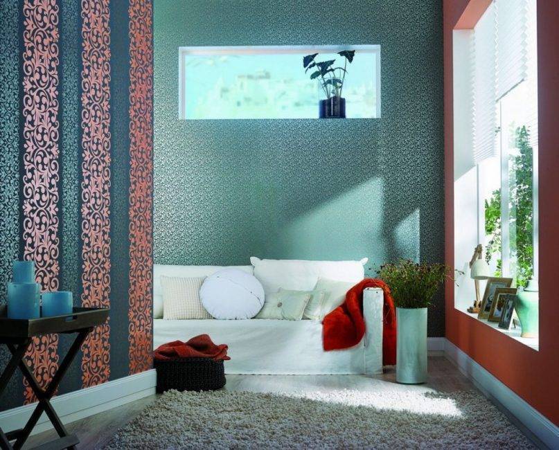 Помните! При комбинировании разных обоев в одной комнате обои с более выраженным рельефом будут играть роль акцента, поэтому планировка дизайна должна зависеть от характера основных материалов в вашем интерьере.