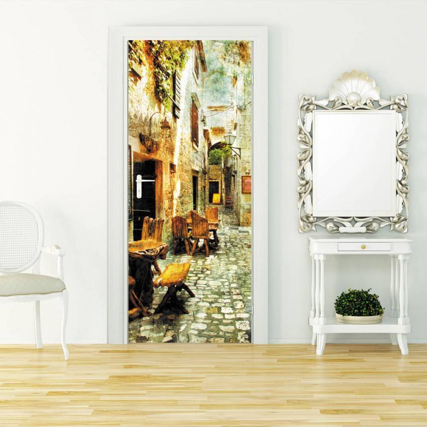 Для дверей обычно выбирают обои с фоновым рисунком.