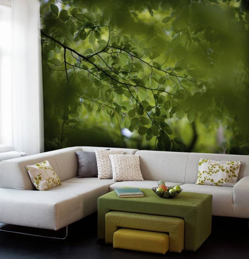 Фотообои на стену в гостиную можно подбирать в различных тематиках. Гармоничны будут и сочетания обоев с пейзажами всех времен года, рисованные гламурные девушки. Тут все зависит от вашей фантазии и желания украсить свою гостиную.