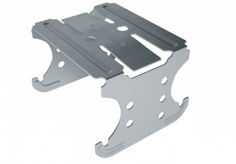 - Подвесы с перфорацией. Используются при конструировании потолков подвесного типа и представляют собой пластину размером 125 на 60 миллиметров. Пластина имеет риски, делящие её на тир части, крайние из которых имеют перфорацию. Середина крепится к плоскости, а крайние элементы, отгибаясь на 90 градусов, удерживают несущий профиль.
