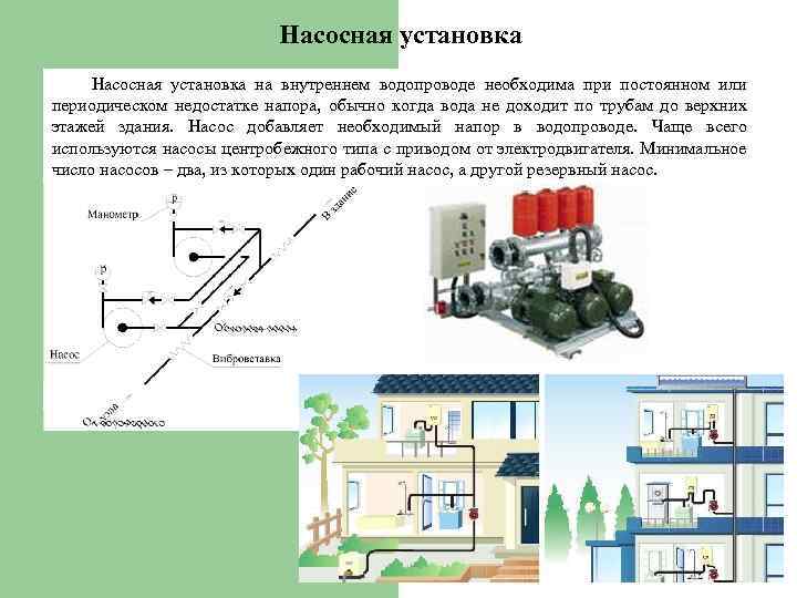 Во всех перечисленных типах станций обязательно присутствуют водяные насосы для домашнего водопровода.