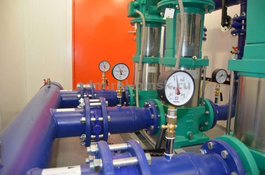 Для подачи воды по внутренним трубопроводам на выходе из емкости монтируют насосную станцию с контрольно-измерительной и регулирующей аппаратурой. При открытии смесительных кранов внутри помещений происходит запуск насосного оборудования и вода из бака подается потребителям.