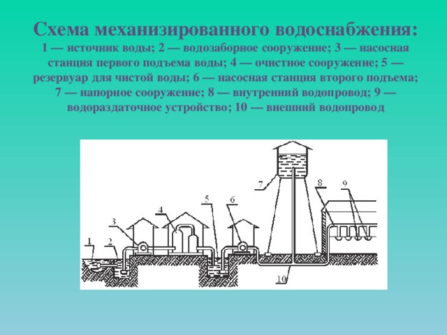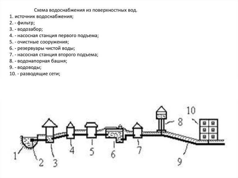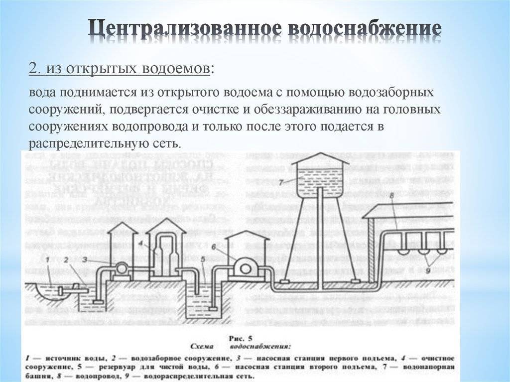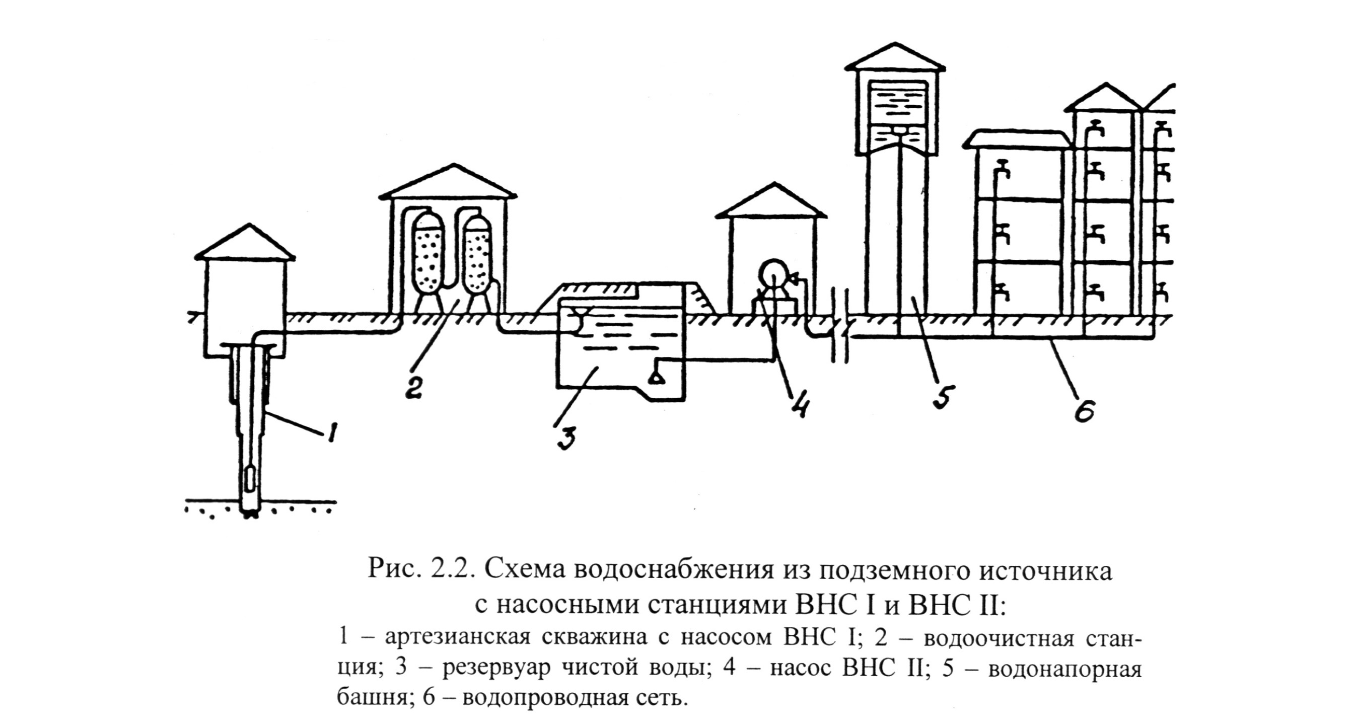 водоснабжения зависит от качества воды, мощности источника, удаленности от объекта