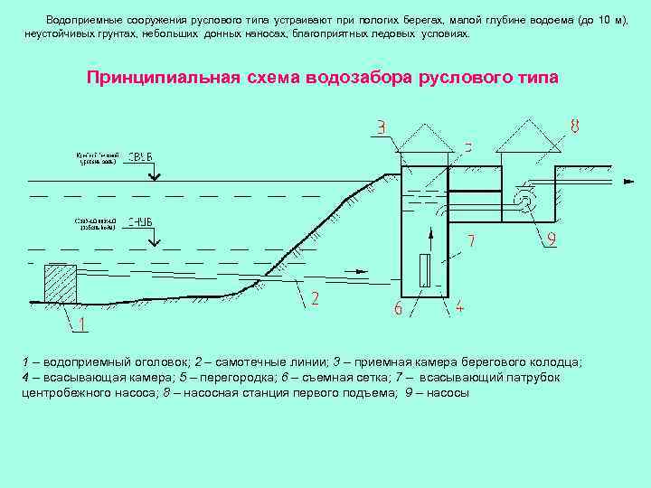 При выборе места водозабора следует учитывать, что русло реки со временем деформируется: