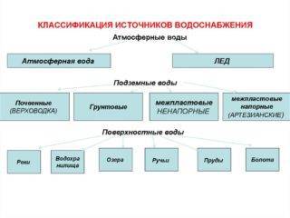 пруды, моря); - подземные (грунтовые, подземные, артезианские