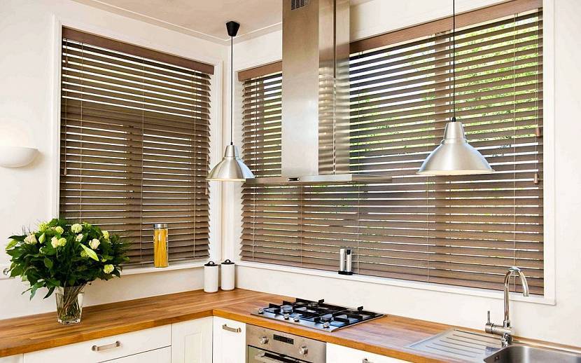 Деревянные горизонтальные жалюзи могут устанавливаться как на пластиковые, так и на деревянные окна. Естественная структура прекрасно вписывается во многие стилевые оформления помещения. Планки могут иметь ширину от 25 до 65 мм, они покрыты специальным защитным воском, который защищает ламели от воздействия солнечных лучей и деформации.