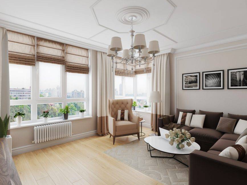 На каждую створку можно установить разные типы полотна, соответственно, плотная ткань будет закрывать только окна – это очень уместно, особенно, если речь идет о мансарде. Тюлью может быть и полупрозрачный ролет, тогда как защищать помещение от солнечных лучей и посторонних глаз могут классические шторы из плотного материала, устанавливаемые на карнизе.