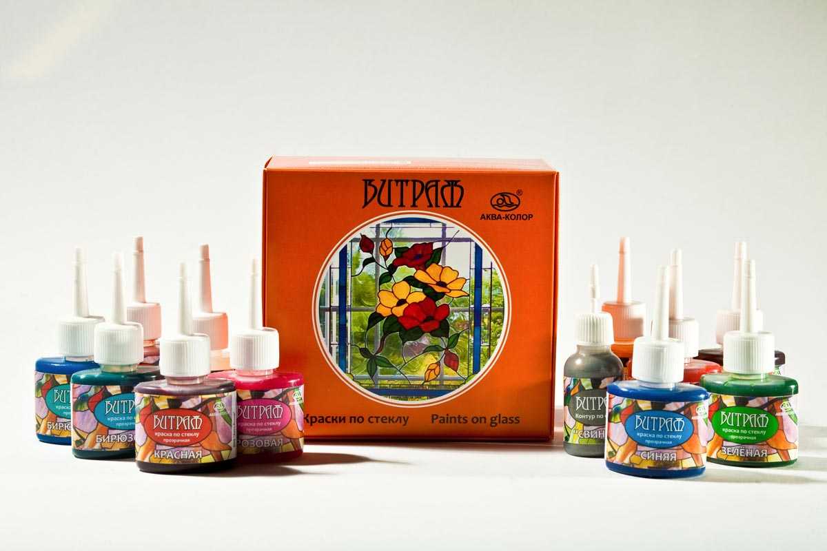 Самым приемлемым красящим материалом для стеклянных поверхностей считаются акриловые витражные краски по стеклу. Они отличаются: