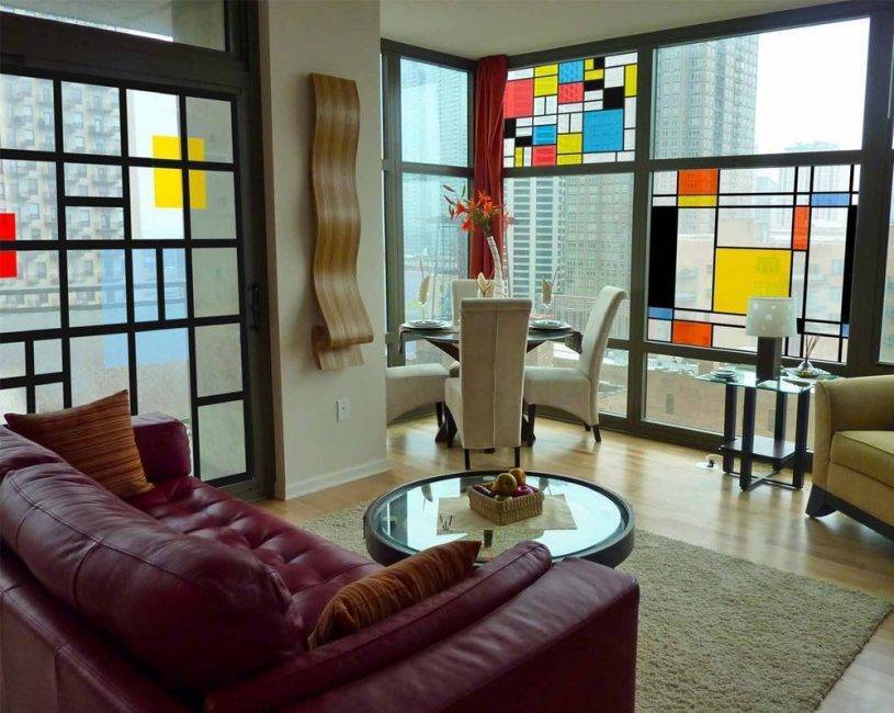 - Размещение помещения. Если окна находятся на южной стороне или на шумной улице, рационально клеить на них витражную пленку с функцией задержки солнечных лучей, шумопоглощения. Это придаст жилью комфорт.