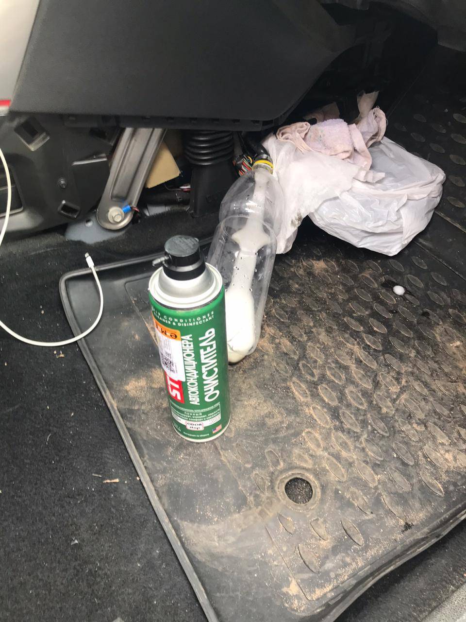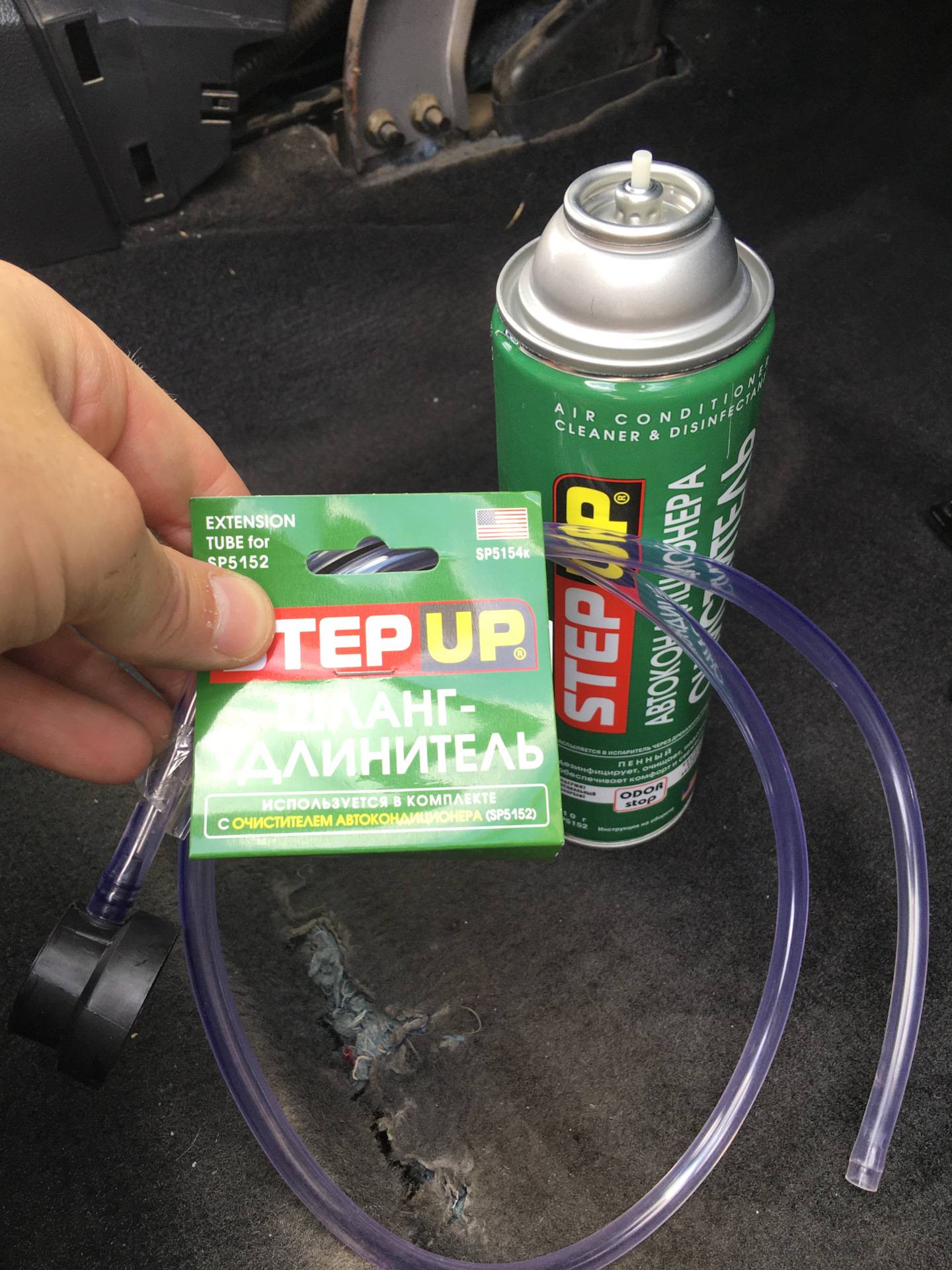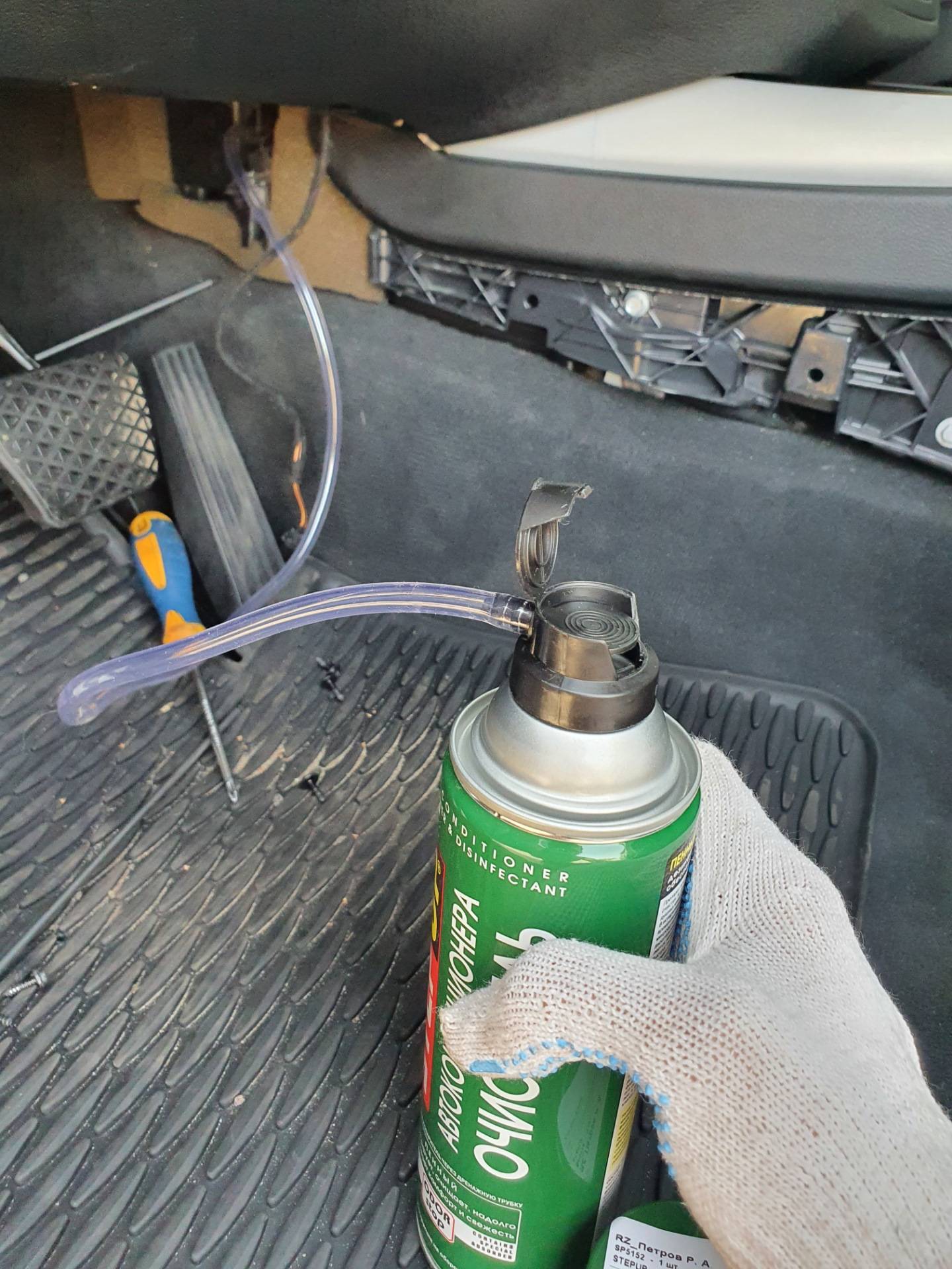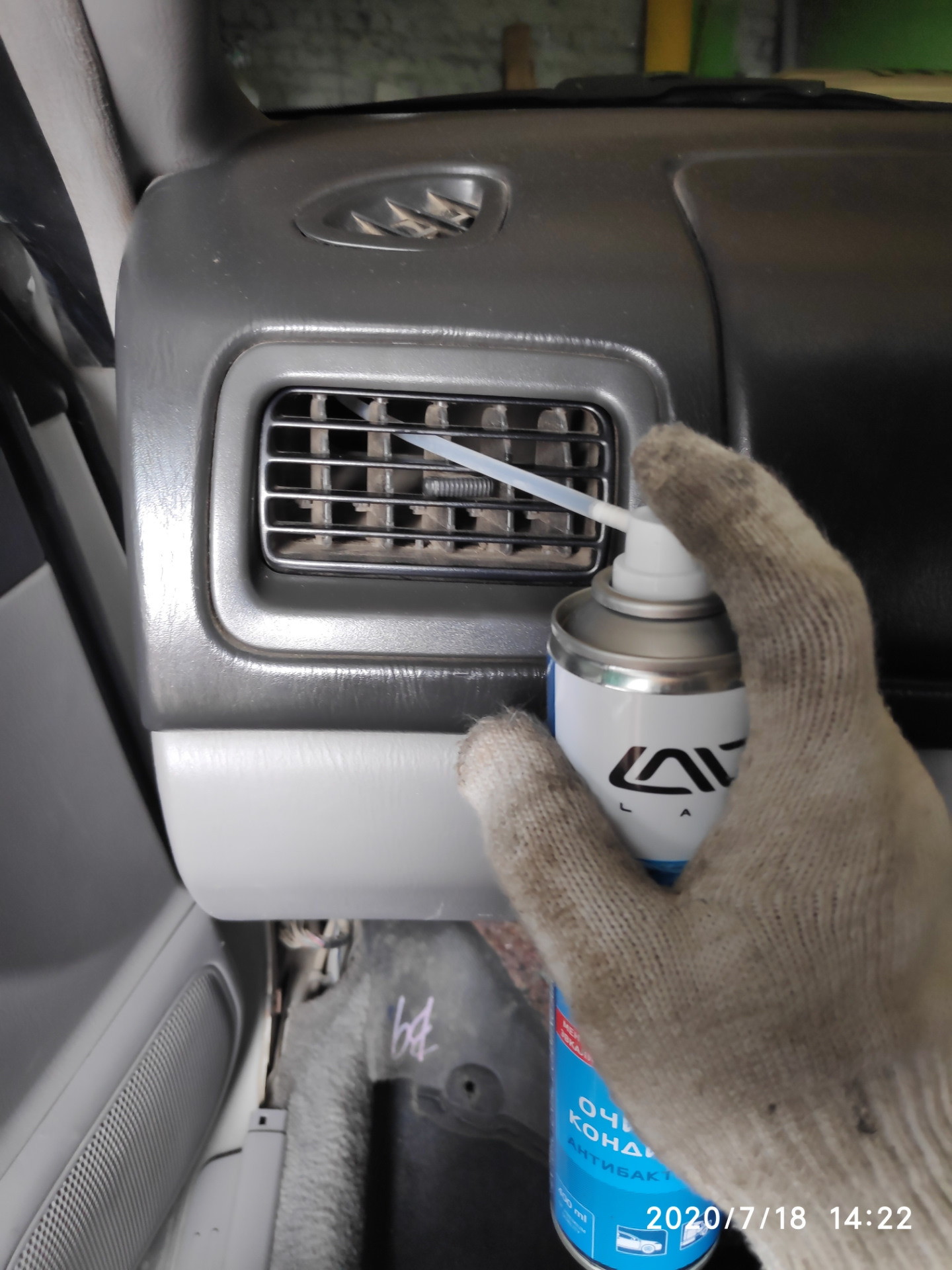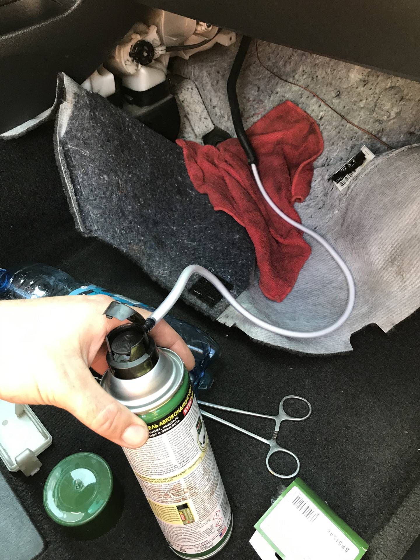 Их содержимое распыляется в отверстие забора воздуха сплит-системы и воздухоотводы при работающем на полной скорости вентиляторе. При этом все окна в машине должны быть закрытыми. Ждем 10 минут, выключаем двигатель и проветриваем салон.