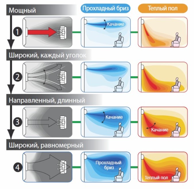 - Сильный сквозняк. Устранить эту проблему можно достаточно просто. Помочь может функция колебания жалюзи. Она есть у большинства современных моделей. Выставьте нужный режим, используя инструкцию по эксплуатации устройства.