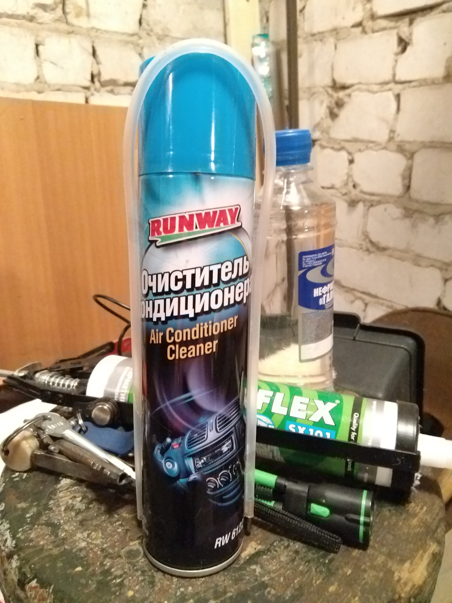 Наиболее простой вариант чистки. Такой способ чаще всего применяется работниками СТО, но можно сделать это и самостоятельно в домашних условиях. Для этого понадобится специальное средство, выбор которого зависит от модели кондиционера. Чаще всего оно продаётся в спрей-балончиках.