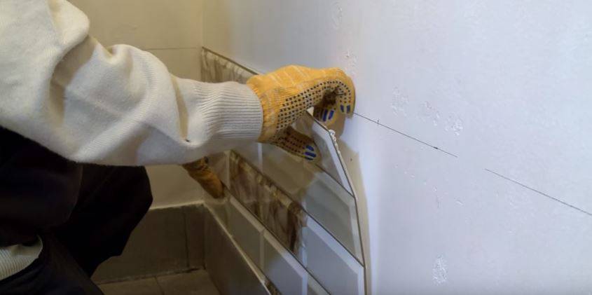 Далее, удалив излишки клеящего состава, можно приклеить следующий элемент. Расстояние, на котором целесообразно располагать стеновые панели для ванной, должно составлять не более 2 мм.