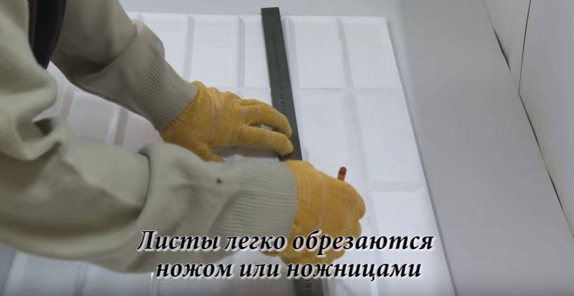 За двое суток до начала установки влагостойкие панели для ванной рекомендуется занести в помещение для их полной адаптации к температуре и влажности. Далее, материал нарезается по разметке. Если стеновые панели имеют рисунок, он при нарезке должен быть сохранен.