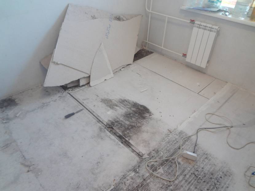 - Разновидность ГВЛ — влагостойкие гипсоволокнистые листы (ГВЛВ) хоть и предназначены для использования в помещениях с повышенной влажностью, все же могут поражаться гнилью. На подгнивших участках они становятся мягкими. Порой листы приходится заменять целиком.
