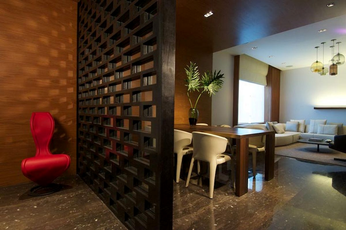 Перегородка может быть выполнена в общем стиле комнаты, в которой она используется, либо контрастировать с интерьером, создавая цветовой акцент. Перегородка в каркасном доме позволит выгодно зонировать пространство в помещении и разделить его на функциональные зоны