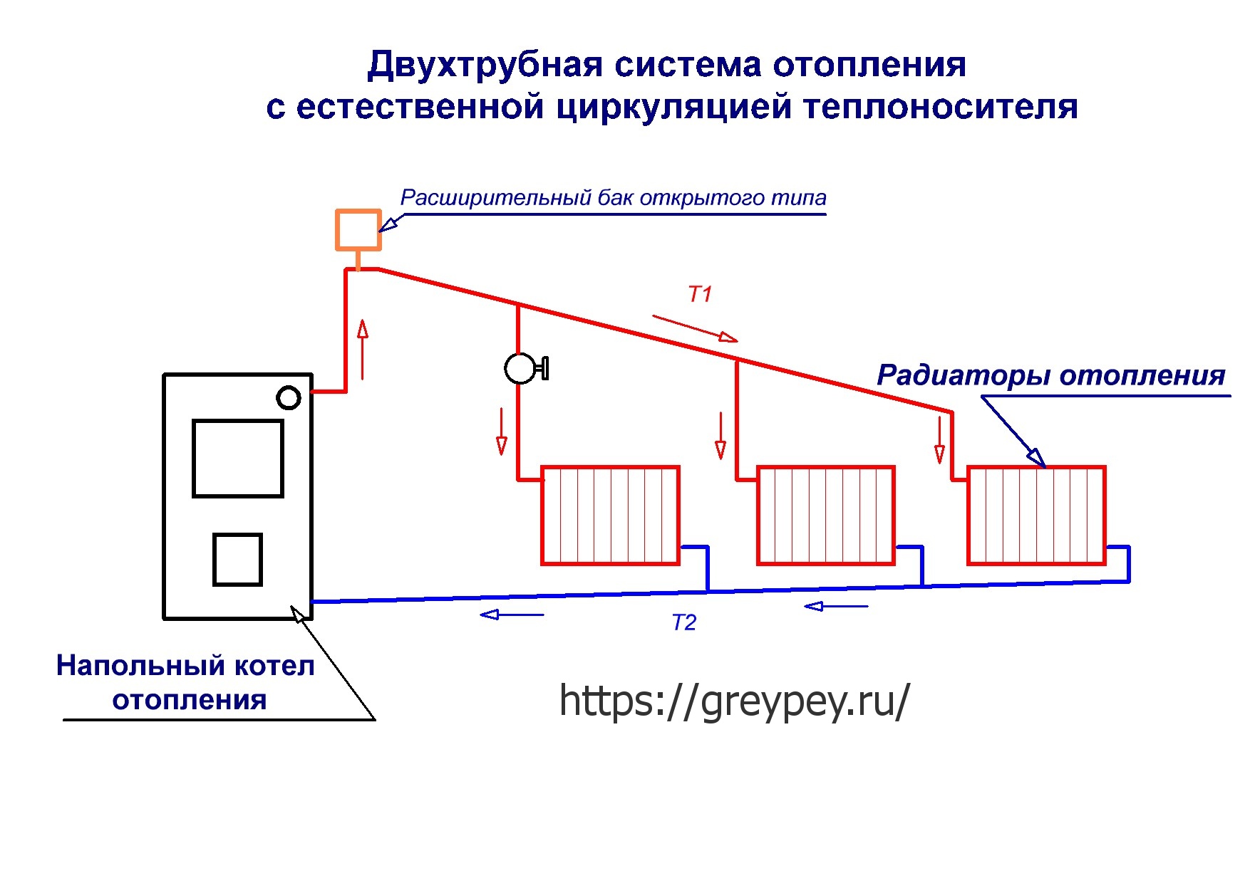 Водяное отопление в котором движение осуществляется за счет разницы внутренних давлений. Нажмите на фото для увеличения.