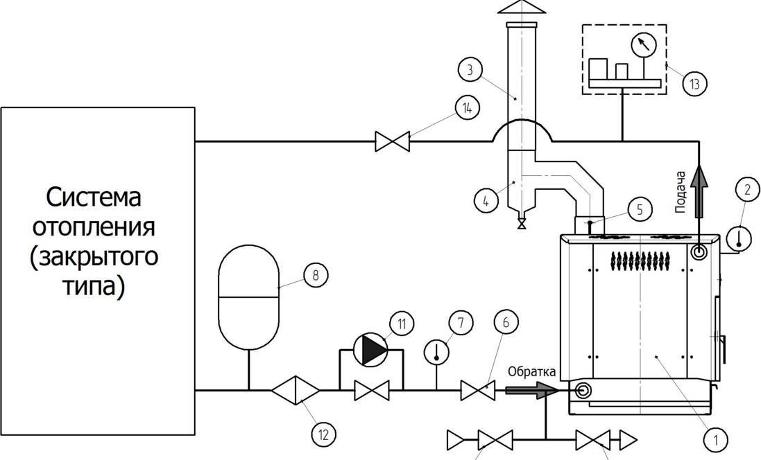 Одноконтурная (система с замкнутой циркуляцией воды,