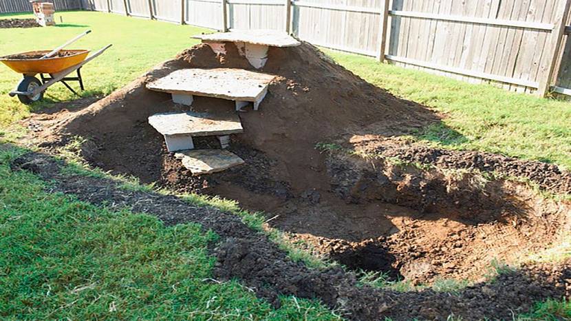 - Сделайте уступы, выровняйте дно, утрамбуйте почву.