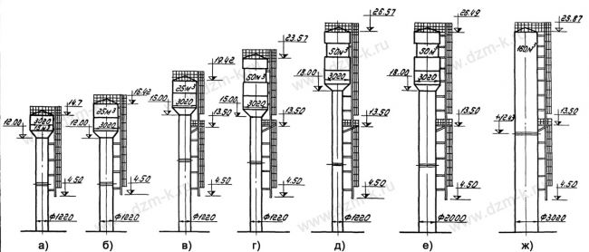 Рисунок. Общий вид водонапорных башен Рожновского